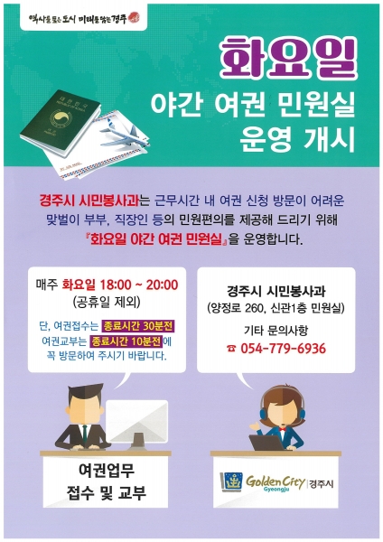 경주시, 오는 12일부터 ‘화요 야간 여권민원실’ 운영 재개