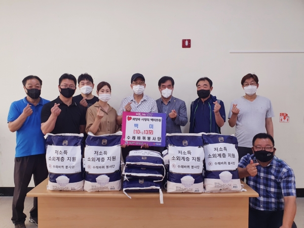 수레바퀴봉사단은 최근 물가상승으로 경제적으로 더 힘들어할 저소득 세대들의 어려움을 걱정하며 조금이나마 힘이 되기를 바라는 마음으로 백미를 전달했다.