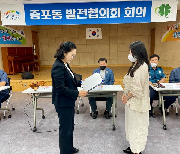 [금요저널] 이천 증포동 발전협의회는 지난 7일 스포츠와 예술 분야 등 재능이 있는 학생을 대상으로 꿈을 포기하지 않고 적극적으로 계발할 수 있도록 관내 학생을 선발해 장학금을 전달했다.