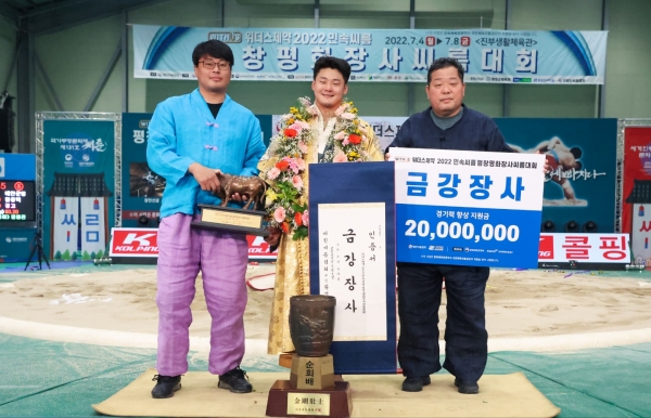 임경택 선수는 “두 번째 금강장사를 차지해 기쁘고 감독님과 코치님, 그리고 장모님과 아버지, 아내에게도 감사드린다”며 “1년 만에 두 번째 장사 등극인데 이번 성과에 자만하지 않고 다음 장사 타이틀은 더 빠르게 따낼 수 있도록 노력하겠다”고 소감을 밝혔다.