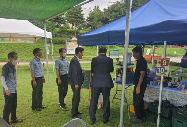 임시장터에는 불볕더위임에도 50여 농가와 10여 업체의 프리마켓이 참여해 다양한 제철 농산물과 지역에서 생산물을 활용해 만든 가공식품 등을 선보였다.
