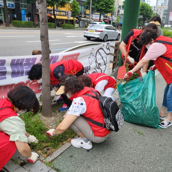 이번 활동은 최근 계속된 장마의 영향으로 인도와 경계석, 가로수 주변에 무성하게 자란 잡초들을 제거해 보행자의 쾌적한 보행환경을 조성하는 취지다.