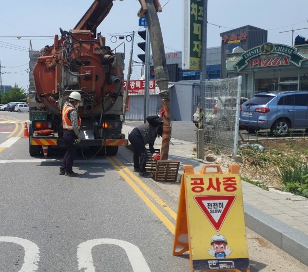 [금요저널] 아산시가 쾌적하고 안전한 도로 환경 조성을 위해 적극적인 도로변 빗물받이 준설과 제초작업에 나서고 있다고 12일 밝혔다.