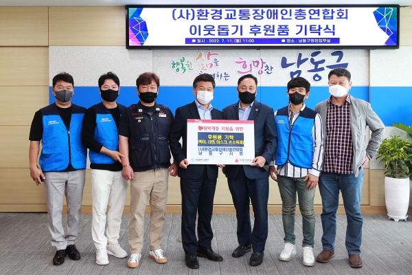 [금요저널] 인천시 남동구는 최근 사단법인 환경교통장애인총연합회 남동구지회로부터 취약계층을 위한 이웃돕기 후원품을 기탁받았다고 12일 밝혔다.