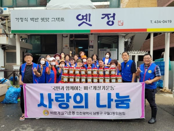 [금요저널] 인천시 남동구 구월3동 행정복지센터는 최근 바르게살기운동위원회가 취약계층을 위한 이웃사랑 열무김치 나눔 행사를 가졌다고 12일 밝혔다.