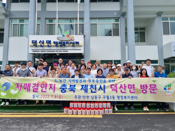 [금요저널] 인천시 남동구 구월3동 행정복지센터는 최근 동 주민자치회 주관으로 자생 단체 회원들과 함께 자매결연지인 충북 제천시 덕산면을 방문했다고 13일 밝혔다.