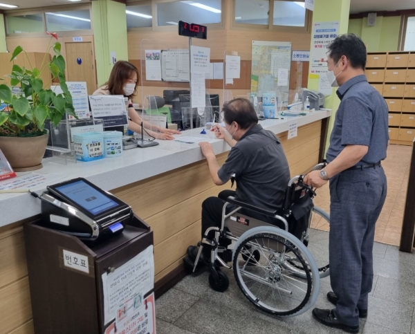 민원서류 발급을 위해 동 행정복지센터를 방문한 거동 불편 민원인에게 휠체어를 제공해 쉽게 민원실까지 이동하도록 하며 비용 부담으로 휠체어 구입이 어렵거나 갑자기 휠체어가 필요한 경우 1회 10일 최대 30일까지 무상 대여해준다.