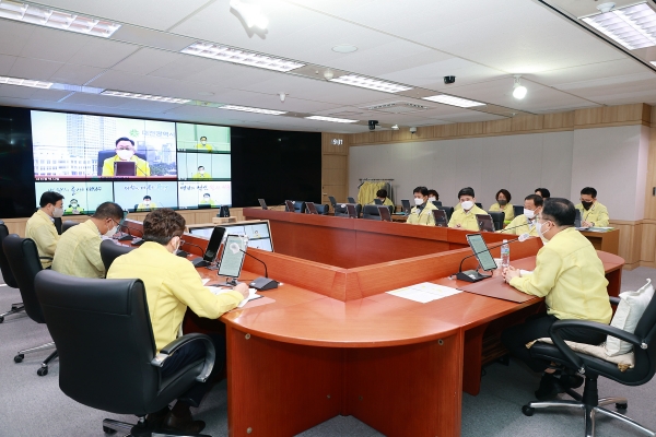 [금요저널] 이장우 대전시장이 13일 중앙재난안전대책본부 영상회의에 참석 후 자치단체장과의 영상회의를 통해 코로나 대응을 위한 대전형 방역 준비 태세를 갖추고 재확산에 적극 대응하겠다고 밝혔다.