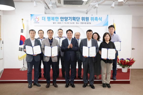 14일 시에 따르면‘더 행복한 안양기획단’이 13일 최대호 안양시장으로부터 위촉장을 받고 출범했다고 밝힌 것. 안양기획단은 손혁재 전 대통령 직속 자치혁신분과위원장을 비롯해 교수와 전직 고위공무원, 시민사회단체 대표 등 민간인 신분의 각계전문가 10명으로 구성돼 있다.