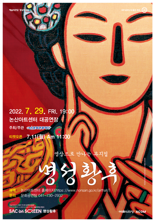 [금요저널] 논산문화관광재단은 지난 7월 11일부터 예매 시작한 두 번째 SAC ON SCREEN ‘영상으로 만나는 ‘뮤지컬 명성황후’’가 조기 매진됐다고 밝혔다.