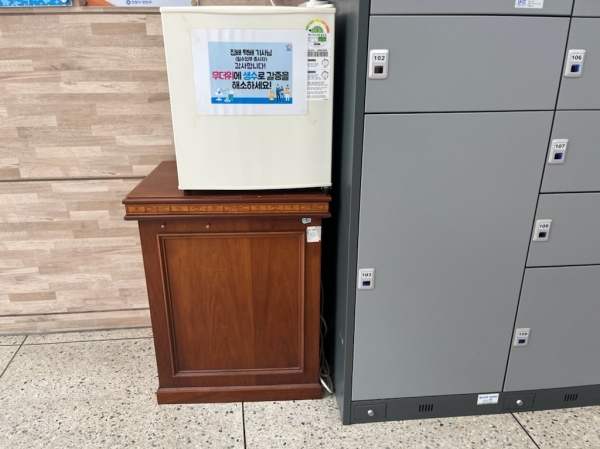 이동노동자들을 위한 무더위쉼터에는 꽝꽝 얼린 시원한 생수가 마련돼 있다.