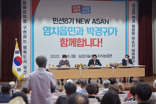[금요저널] 4일 차를 맞은 아산시 열린간담회가 18일 염치읍 농업기술센터, 음봉면 월랑초등학교 강당에서 열렸다.