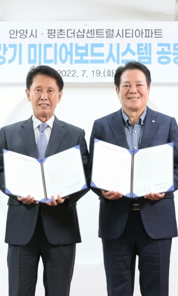 이날 협약으로 더샵아파트 공동승강기 미디어보드시스템에 안양시의 다양한 소식이 영상형태로 실시간 제공될 예정이다.