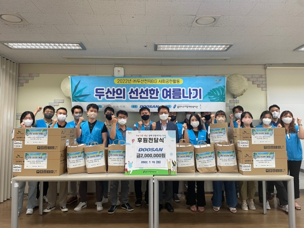 이번 선선한 여름나기 사업 진행을 위해 ㈜두산전자BG에서는 후원금 2,000,000원을 전달했다.