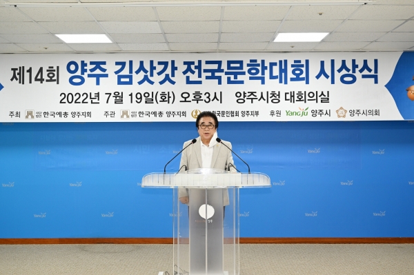 강수현 양주시장은 “문학과 예술의 고장 양주시에서 열린 김삿갓 전국문학대회에 관심을 갖고 참여해준 참가자 여러분에게 진심으로 감사의 말씀드린다”며 “우리나라 대표 문학대회로 거듭나고 있는 김삿갓 문학대회에서 입상한 수상자들의 활발한 문학활동을 응원하며 한국문학의 큰 맥을 이어주는 작가로 성장하길 기원한다”고 밝혔다.