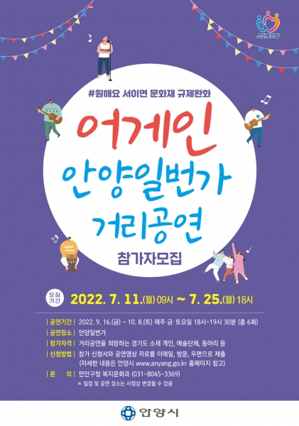 거리공연 참여를 희망하는 개인·단체는 이 7월 25일까지 이메일이나 해당 관청인 만안구청을 방문해 신청하면 된다.