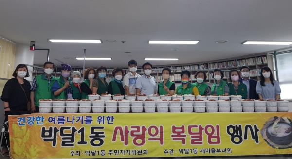 박달1동 새마을부녀회에서는 지난 15일 관내 독거어르신 등 150명에게 삼계탕을 대접하는 ‘사랑의 복달임 행사’를 개최했다.