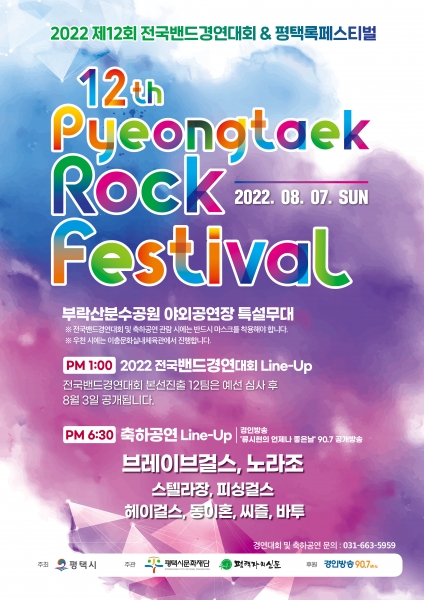 평택시가 주최하고 평택시문화재단, 평택자치신문이 주관하는 이번 행사는 올해로 12회를 맞았으며 평택전국밴드경연대회 본선 경연과 록페스티벌 축하공연 순으로 진행된다.