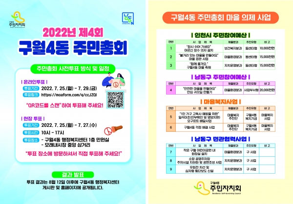 구월4동 주민자치회, 7월 25~29일 주민총회 사전투표