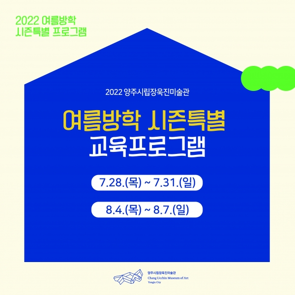 [금요저널] 양주시립장욱진미술관은 오는 28일부터 8월 7일까지 유아와 어린이를 대상으로 ‘2022 여름방학시즌 특별 교육프로그램’을 운영한다.