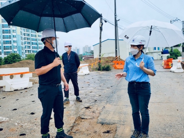 이번 발주공사 현장 안전점검은 고용노동부 평택지청 근로감독관, 안전보건공단 전문가와의 합동으로 이루어졌으며 안전 보호구 지급 여부, 근로자들의 온열질환 예방을 위한 용품 배치 및 휴게시설 설치 여부, 굴삭기 등 건설기계 운행 시 작업계획 관련 서류 구비 및 집중호우로 인한 사면붕괴 예방 조치 등에 대한 점검사항을 확인했다.