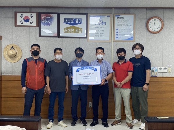 [금요저널] 현화골목상가 상인회는 지난 27일 평택시 안중읍 행정복지센터를 방문해 골드경품행사 이익금과 행사용 천막을 안중읍에 기증했다.
