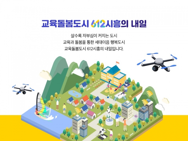 ‘교육돌봄도시 612시흥’을 통해 시흥시는 온종일 돌봄지원에 관한 조례를 개정하며 제도 정비 및 업무 역량에 집중하고 돌봄 틈새공백을 메우고자 전국 최초로 시행된 시흥형 초등돌봄통합 플랫폼과 콜센터를 구축했다.