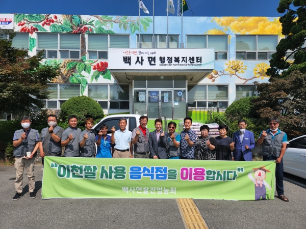 백사쌀전업농회 이상열 회장은 “어려운 시기를 보내고 있는 농가를 위해 회원들의 뜻이 모아져 기탁을 하게 됐으며 이천쌀 수요 증가를 위해 이천쌀을 사용하는 음식점을 이용 해주기를 바란다”고 말했다.