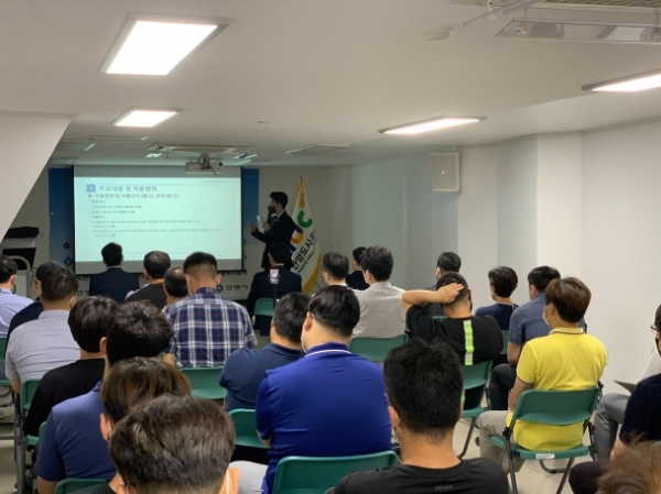 초청 강사인 김덕호 변호사는 1월 27일부터 새롭게 시행되는 중대재해처벌법에 대한 주요 개념을 기반으로 현장 시설물 안전관리 쟁점 사항과 대응 방안 등에 대해 강연했다.