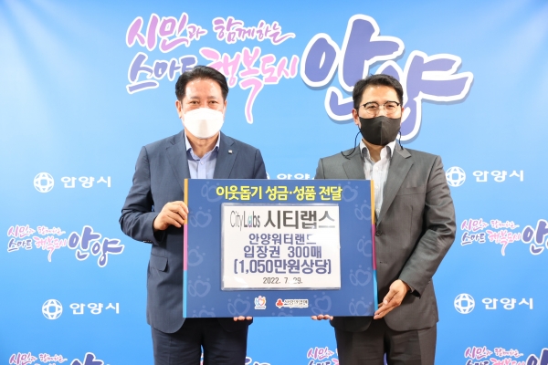 1일 시에 따르면 지역의 스마트기업인‘시티랩스’대표가 지난달 29일 최대호 시장을 예방, 저소득층 자녀들에게 전달해 달라며 물놀이 입장권 3백 매를 맡긴 것. 시는 지역아동센터 연합회를 통해 여름 성수기 이전까지 저소득층 가정 아동과 어린 청소년들을 대상으로 배포를 마칠 방침이다.