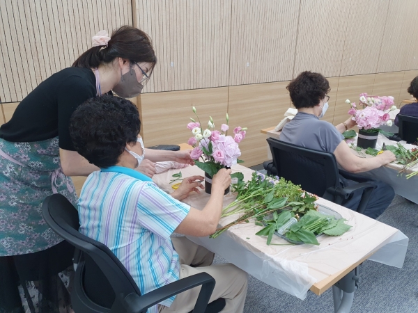 치매예방교실에서는 치매예방 실천강화 프로그램으로 생화로 센티피스 꽃꽂이, 고무나무 식재하는 원예교실 및 접시, 컵 등 꾸미는 도예교실을 운영해 신체적·정신적 활동 역량을 향상시키고 손끝신경 자극을 통한 뇌건강 증진을 도모하며 현재 3회차가 운영되고 있다.