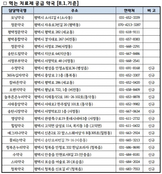 [금요저널] 평택시는 지난 7월29일부터 코로나19 ‘먹는 치료제’ 처방 절차가 간소화 됨에 따라, 시민들이 편리하게 치료제를 공급받을 수 있도록 기존 공급 약국을 7개에서 22개로 3배 확충했다고 밝혔다.