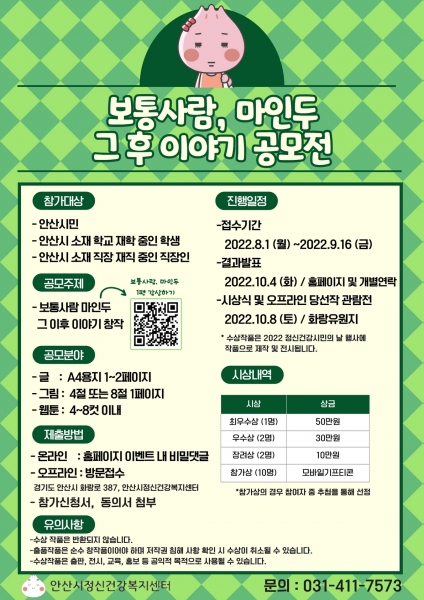 안산시정신건강복지센터,‘보통사람 마인두, 그 후 이야기 공모전’ 개최