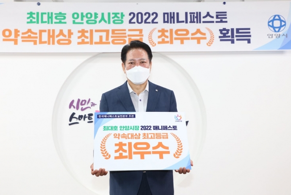[금요저널] 최대호 안양시장이 한국매니페스토실천본부가 발표한 ‘2022 매니페스토 약속대상’에서 최우수 평가를 받았다.