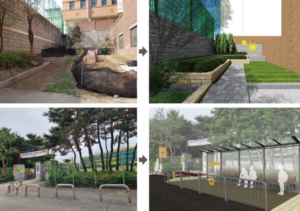 성남동초등학교 정문 앞에는 ‘기다림 쉼터’를 새로 조성한다.