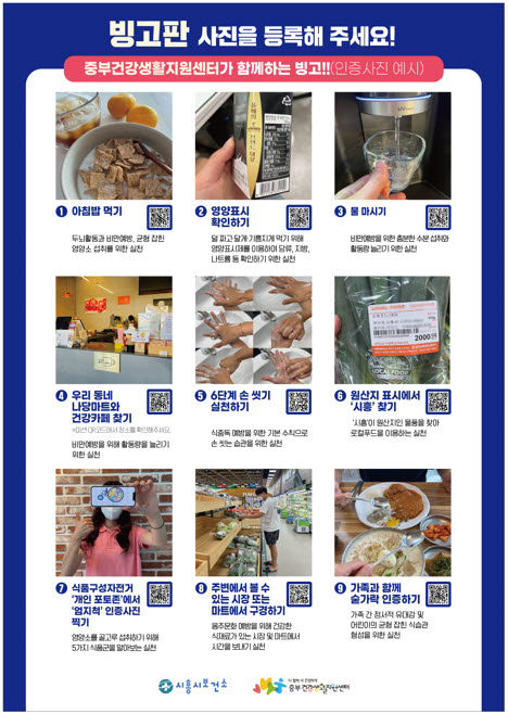 [금요저널] 시흥시 중부건강생활지원센터는 9가지 미션을 통해 건강한 식생활 실천을 도전할 수 있는 ‘#슬기로운식생활 빙고 챌린지’를 10일부터 19일까지 운영한다.