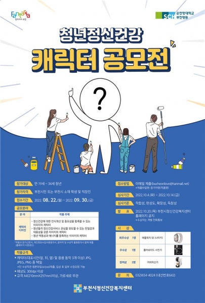 [금요저널] 부천시와 부천시정신건강복지센터는 8월 22일부터 9월 30일까지 6주간 청년정신건강 캐릭터 공모전을 개최한다.