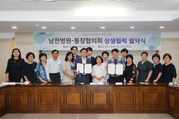 [금요저널] 지난 8월 8일 군포시통장협의회와 남천병원은 군포시 통장을 대상으로 하는 의료혜택 상생협력 협약을 체결했다.