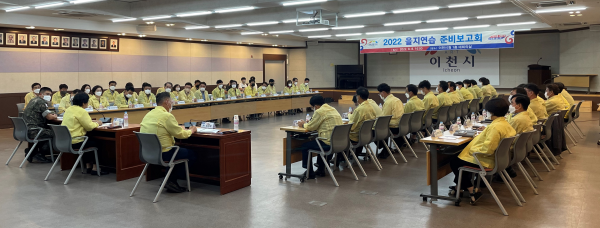 [금요저널] 이천시는 8일 시청 대회의실에서 김경희 시장과 부시장, 국장, 실과소장 및군 3901부대 1대대 관계자 등 60여명이 참석한 가운데 시장 주재로 을지연습 준비 보고회를 개최했다.