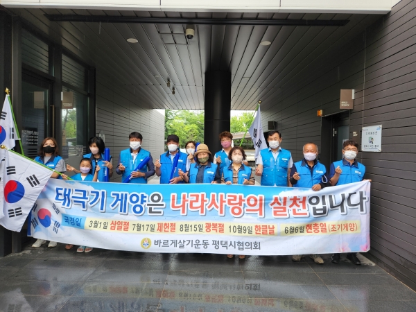 [금요저널] 평택시 바르게살기운동 비전1동 위원회(위원장 최재윤)는 지난 9일 비전1동 행정복지센터 앞에서 ‘나라사랑 태극기 게양 캠페인’을 벌였다.