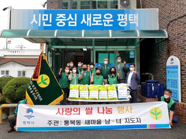 [금요저널] 평택시 통복동 새마을지도자 협의회·부녀회가 지난 9일 통복동 행정복지센터에서 ‘사랑의 쌀’ 전달식을 가졌다.