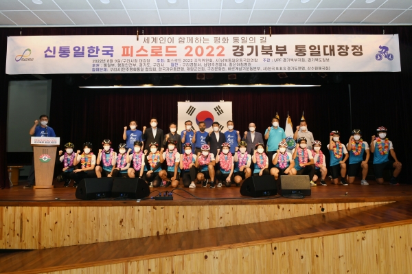 [금요저널] 구리시는 남북통일국민운동연합 경기북부지회 주관으로 지난 9일 시청 대강당에서 ‘신통일한국 피스로드 2022 경기북부 통일대장정’환영식 행사를 진행했다.