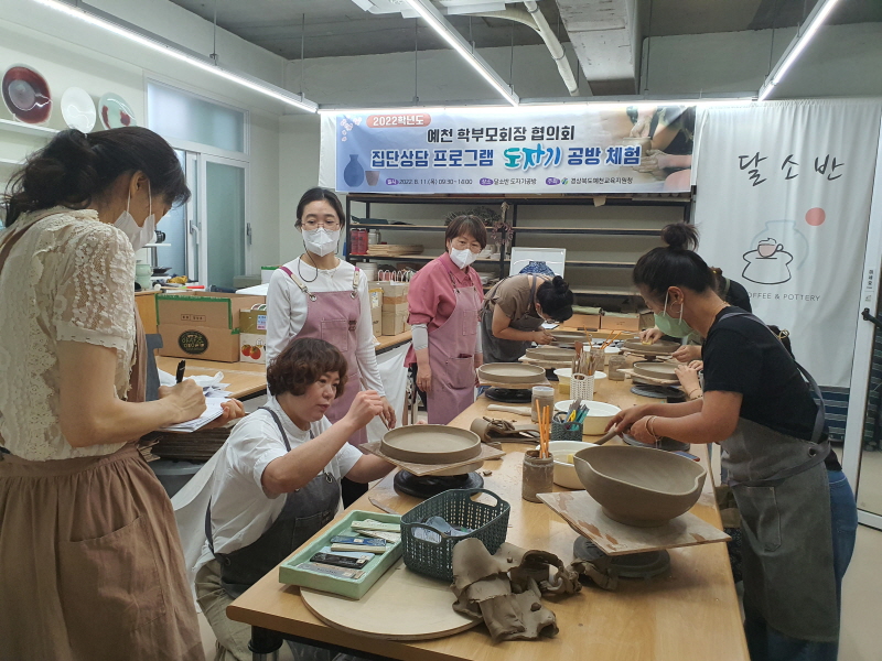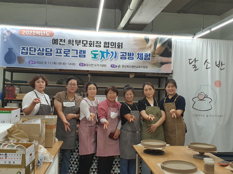□ 예천교육지원청(교육장 이학승)은 2022. 8. 11.(목) 달소반 도자기 공방에서 예천지역 학부모회장 협의회 임원을 대상으로 도자기 공방 체험을 실시하였다.