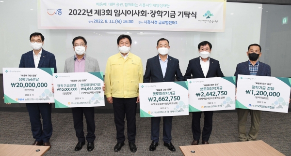 [금요저널] 시흥시인재양성재단은 지난 11일 시흥시청 글로벌센터1에서 2022년 제3회 임시이사회와 장학기금 기탁식을 진행했다.