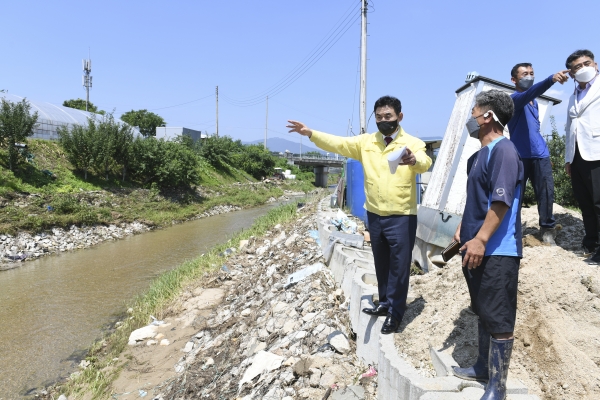 이날 백영현 시장은 지난 8일 집중호우로 피해를 입은 가산면 일대 농경지 및 내촌면 도로침수 현장을 확인하고 신속한 피해복구를 지시했다.