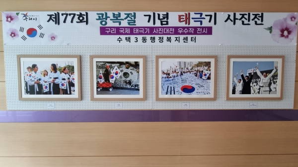 [금요저널] 구리시 수택3동 행정복지센터에서는 제77회 광복절을 맞아 지난 11일부터 행정복지센터 3층에서 ‘구리국제태극기사진대전’ 출품작 중 우수작을 전시한다.