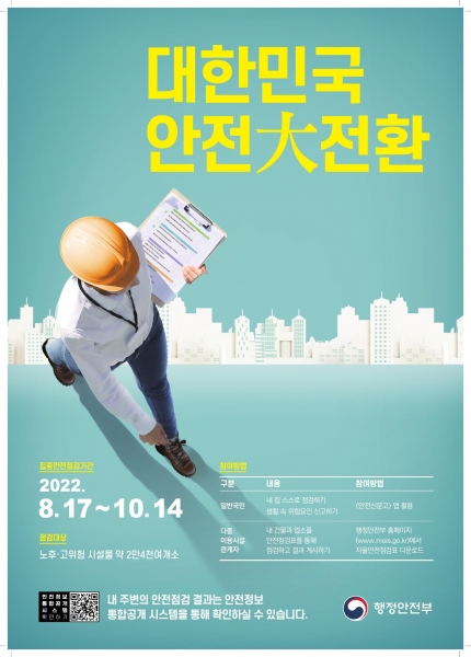 [금요저널] 이천시는 오는 17일부터 10월 14일까지 59일간 우리 생활 속 위험요인을 발굴·해소를 위해‘대한민국 안전大전환’2022년 국가안전대진단을 추진한다.