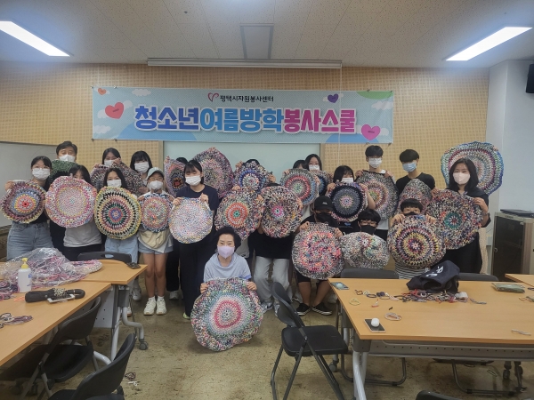 청소년여름방학봉사스쿨은 코로나19로 인해 자원봉사 활동의 공백을 겪은 청소년을 대상으로 자원봉사소양교육 및 탄소중립 교육 산업폐기물을 활용한 방석 만들기 활동 등을 운영해, 자원봉사활동의 가치를 올바르게 인식하고 사회적 이슈인 탄소중립의 의미와 생활 속 실천행동에 대해 알아보는 기회를 제공했다.