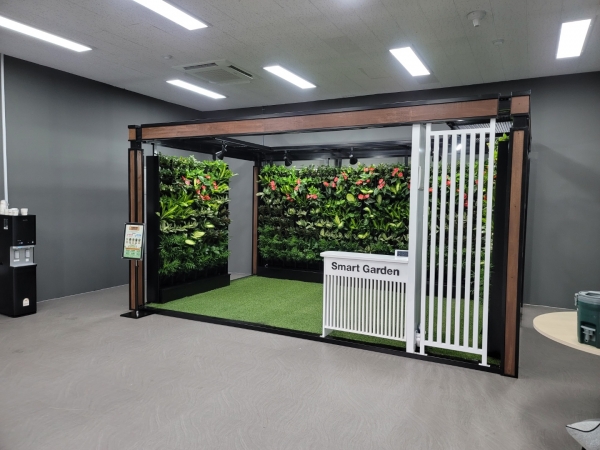 스마트가든은 산림청과 인천시, 남동구가 총사업비 2억 4천만원을 지원해 기업체 별도의 비용부담 없이 회사 내 유휴공간을 활용해 근로자에게 친환경 휴식공간을 조성하는 사업이다.