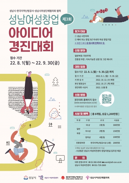 [금요저널] 성남시는 한국지역난방공사와 함께 ‘제3회 성남 여성 창업아이디어 경진대회’를 개최한다고 18일 밝혔다.